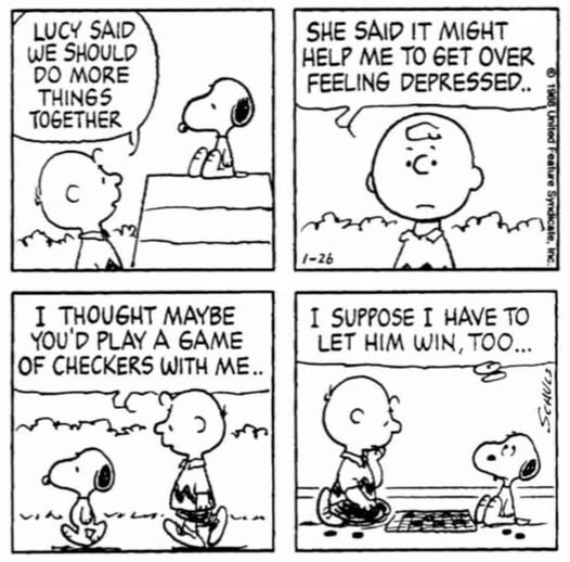 “The Queen’s Gambit,” but with Charlie Brown and Lucy playing checkers for seven episodes